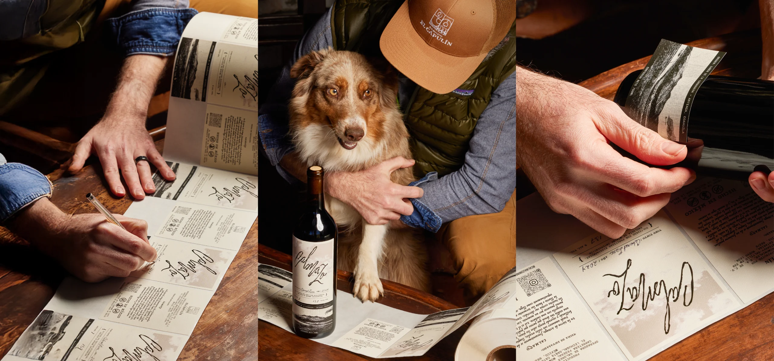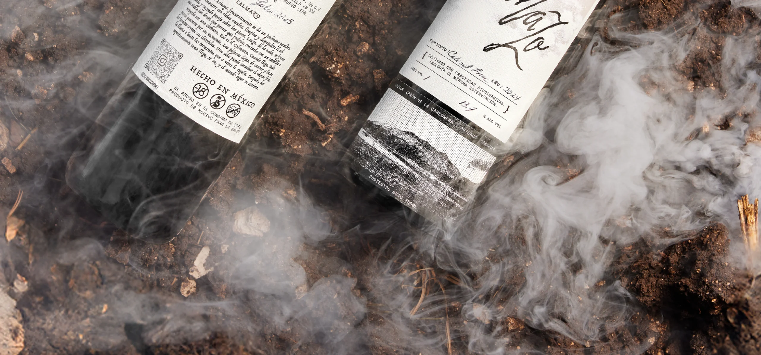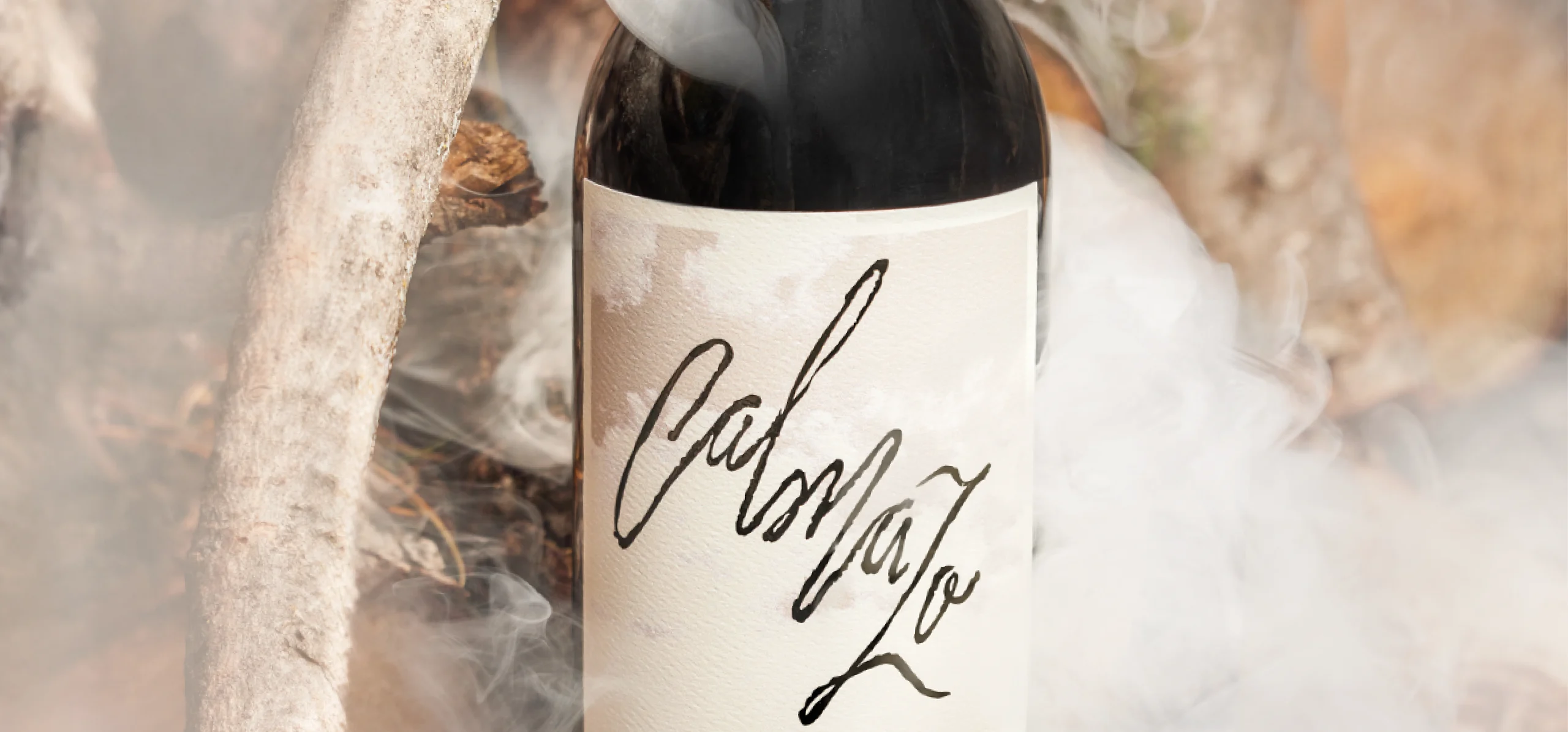 Calmazo is a line of wines produced at Rancho El Capulín, named after a natural phenomenon of the Sierra de Arteaga: a brief fog that appears and disappears. The visual identity is built around an organic logotype that evokes clouds moving over the mountains and the shape of the wine’s legs in the glass, paired with a label that integrates photography of the ranch with references to analog processes. The result is a simple label with a nostalgic character, a clear connection to its territory, and a contemporary aesthetic.